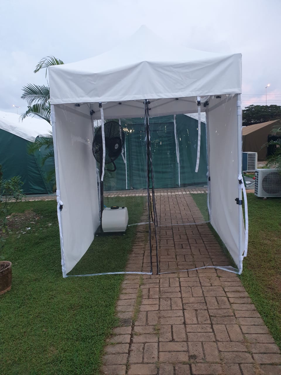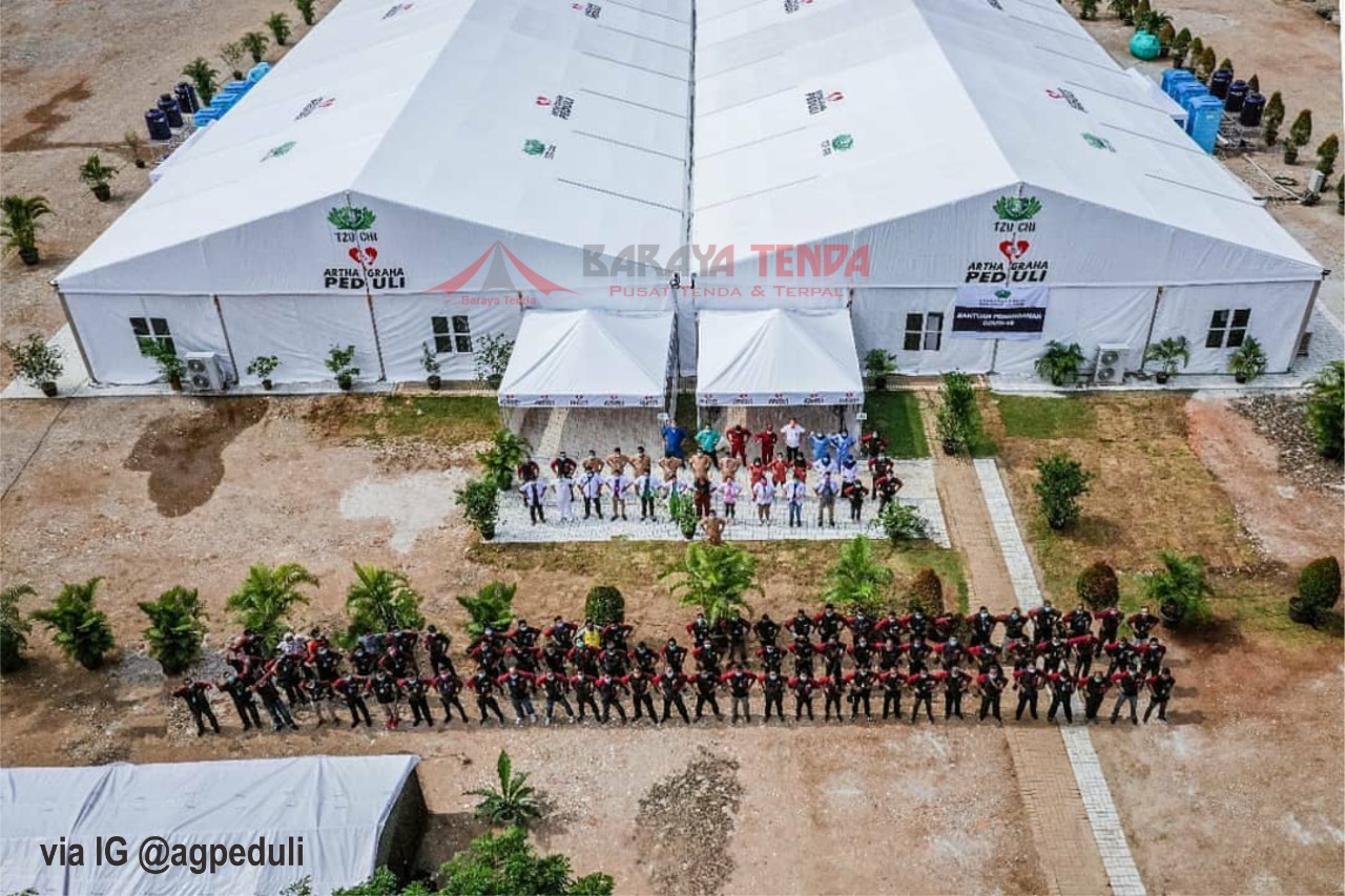 Tenda-tenda yang digunakan merupakan tenda medis berkualitas tinggi dari Sadaya Tenda, yang dirancang untuk memberikan ruang isolasi sementara dengan sistem ventilasi dan perlengkapan medis yang memadai. Dengan desain modular, tenda ini mudah dipasang dan sangat efektif untuk kondisi darurat di tengah keterbatasan ruang rumah sakit.